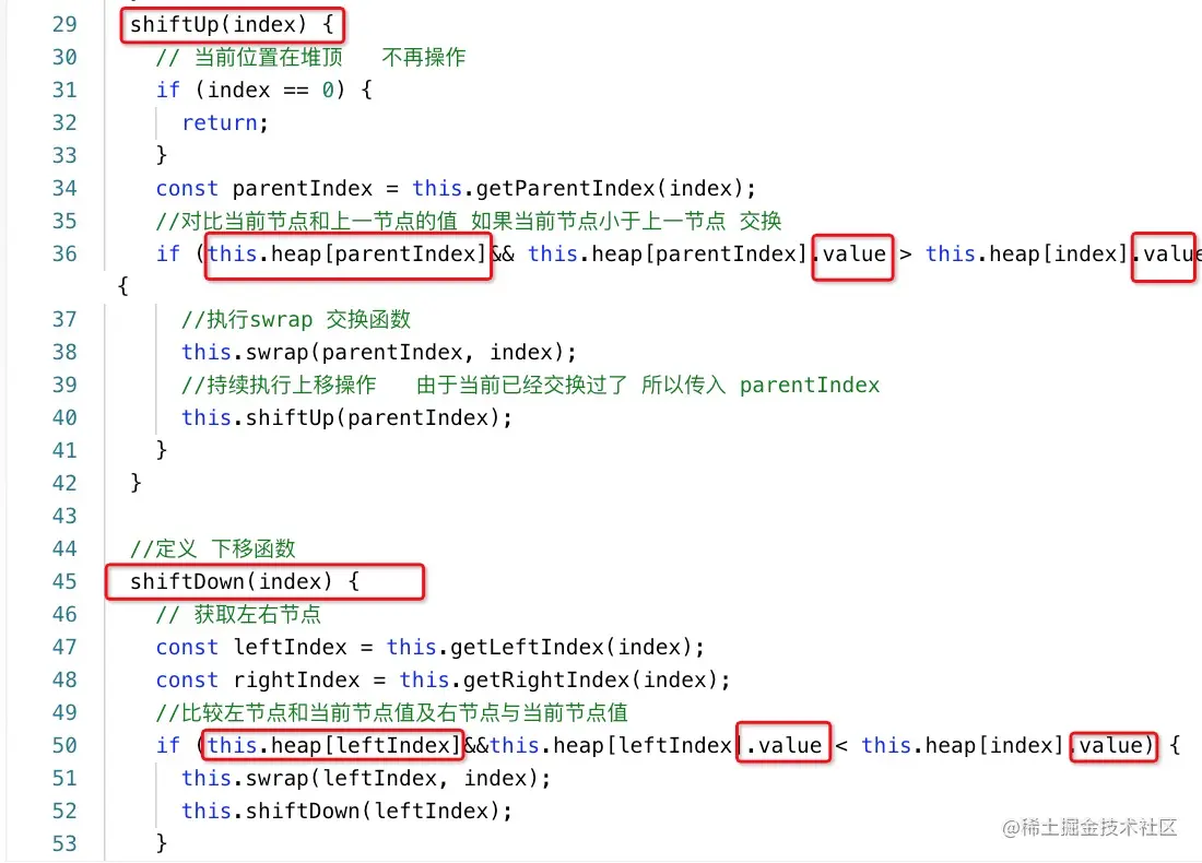 由于 下面 插入堆中的结构发生了 变化 相应的 堆也要变化 - 也要确保 类型 这样的this.heap[parentIndex] 有值