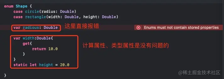 - 8、enum中还可以包含计算属性、类型属性,但是不能包含存储属性