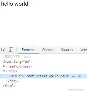 root.innerHTML = "hello world";