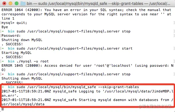 $ sudo /usr/local/mysql/bin/mysqld_safe --skip-grant-tables