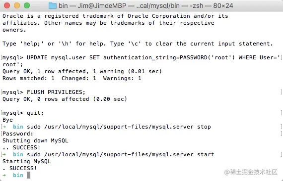 $ sudo /usr/local/mysql/support-files/mysql.server stop