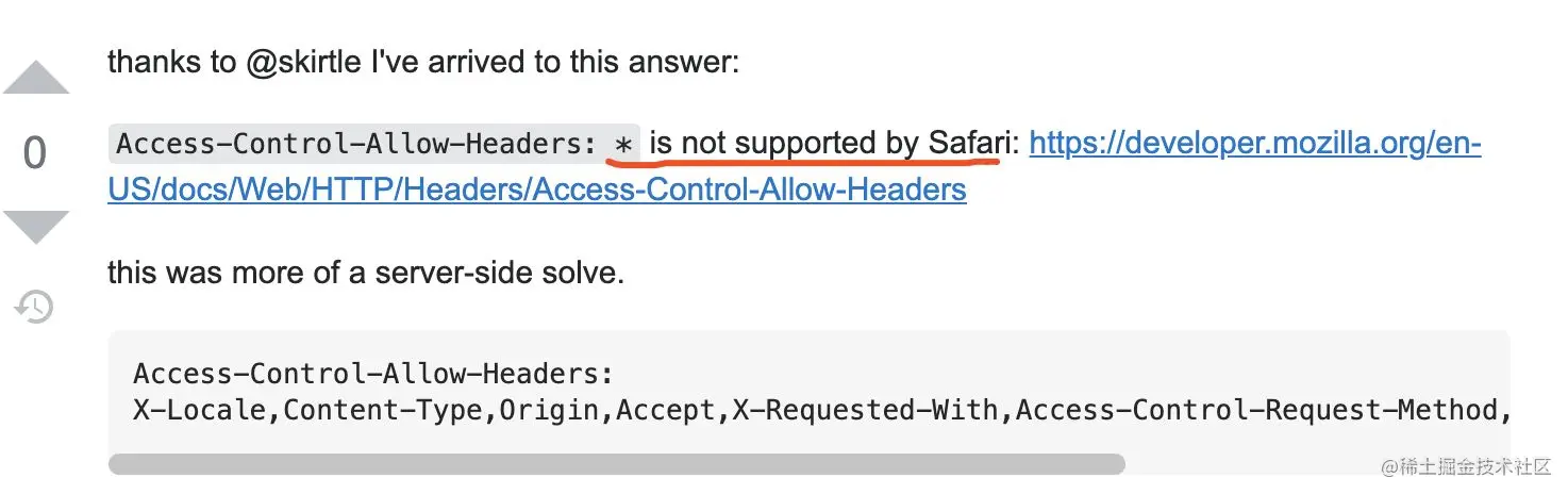 仔细分析对比返回的报文,发现Response Header中还有一个额外的字段:Access-Control-Allow-Headers: *,隐隐感觉就是这个星号有问题。已查资料发现还真是这样。