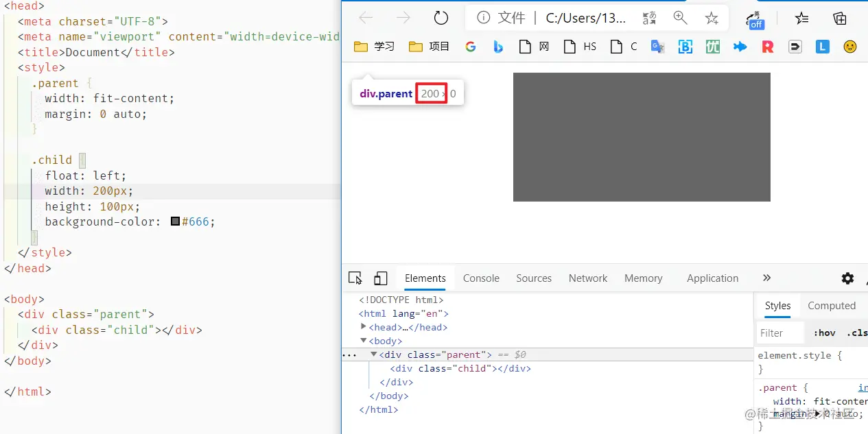 .parent { width: fit-content; margin: 0 auto; } .child { float: left; }width: fit-content;可以让父元素的宽度正好包裹住子元素的宽度