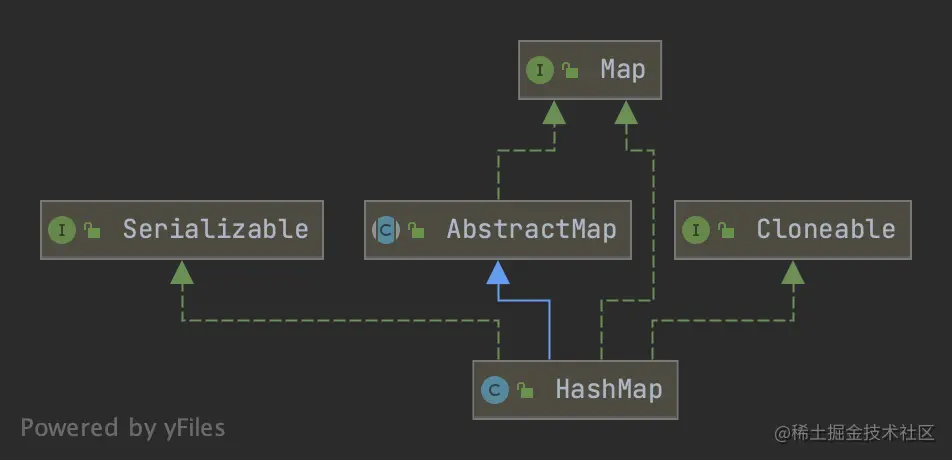 在HashMap中,所有的迭代器,包括KeySet、Values、EntrySet对应的迭代器都继承自HashIterator: