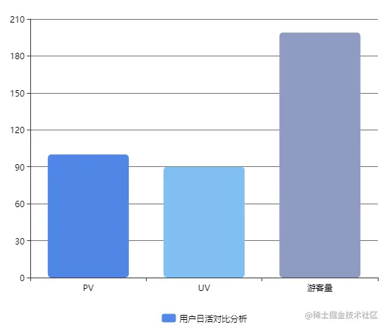 统计用户日活对比分析(PV、UV、游客数)分别使用柱状图显示