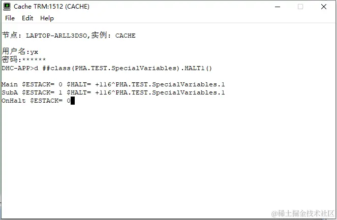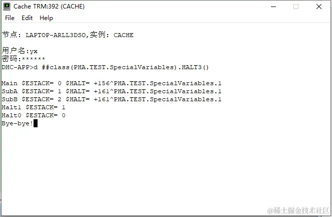 DHC-APP>d ##class(PHA.TEST.SpecialVariables).HALT()