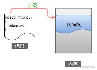 每一个函数在经过编译之后,都变成一个包含多条指令的集合,在程序被加载到内存之后,这个指令集合被放在代码区,我们在程序中使用函数名就代表了这个指令集合的开始地址。