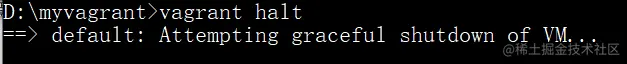 命令行vagrant halt关闭虚拟机 也可在Virtualbox中虚拟机右键关闭虚拟机