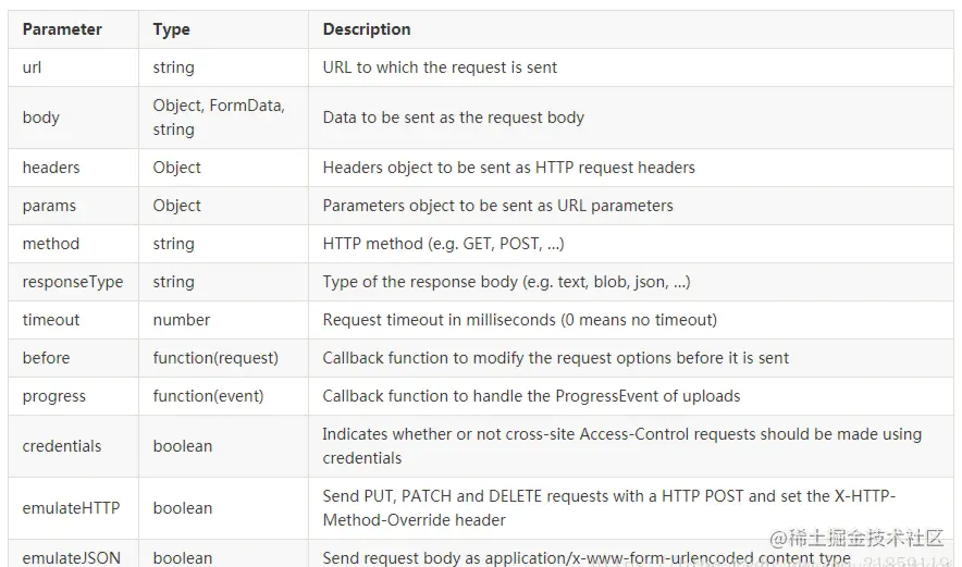 options对象 发送请求时的options选项对象包含以下属性: