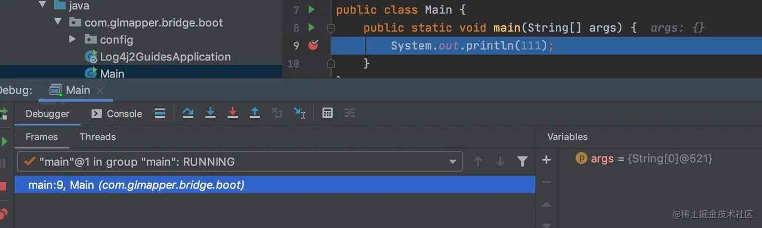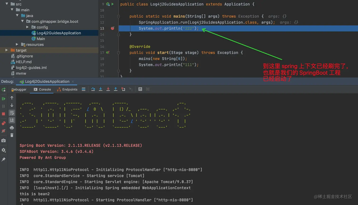SpringApplication.run(Log4j2GuidesApplication.class, args);