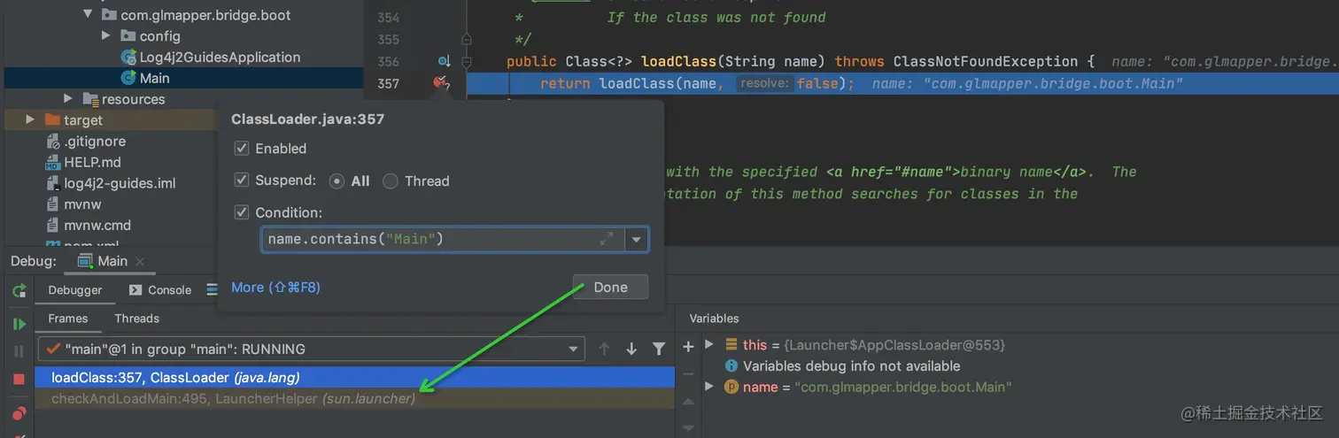 JDK 里面的代码太多了,如果在不清楚的情况下去找,那和大海捞针差不多;那我们想一下,既然 java 要去执行 main,首先它要找到这个 main,那 main 方法是写在我们代码里面的,所以对于 java 来说,它就不得不去先把我们包含 main 方法的类加载起来。所以: