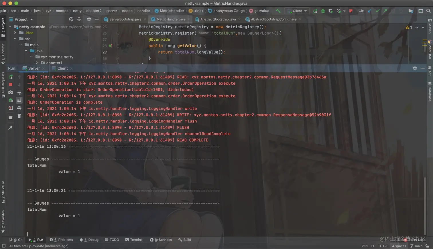 Netty进行了简单的一个介绍,让大家对此基础有一定的了解,接下来讲解下其中我们如何自定义的实现Metric监控(当然粘包问题也很重要,但是只要了解到传输过程中,消息体如何切分以及合并,再看看对应的解决方法即可完成)。
