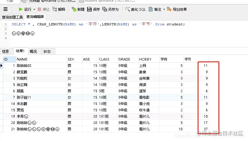 如上图中所示,这是编码改成utf8mb4后入库的数据,大家可以清晰的对比一下所占的字符数、字节数。正因如此,4字节的内容往utf8编码中插入,肯定是不行的,插不进去啊,是吧(大潘摊手)。