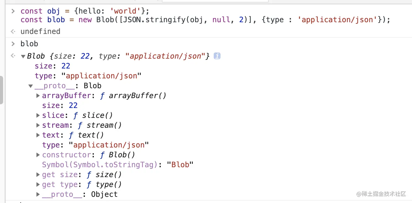 我们可以通俗地理解,blob 对象保存了数据,比如文件数据、字符串等。上面我们提到的 File 对象所代表的文件数据也是通过 Blob 来保存的,File 对象继承自 Blob 对象,并扩展了相关的接口以支持从用户的文件系统选择文件。