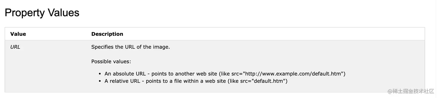 我们可以看到,src 属性是一个指定了图片资源的 URL,并且可以使用绝对路径和相对路径,所以他一定是字符串类型。