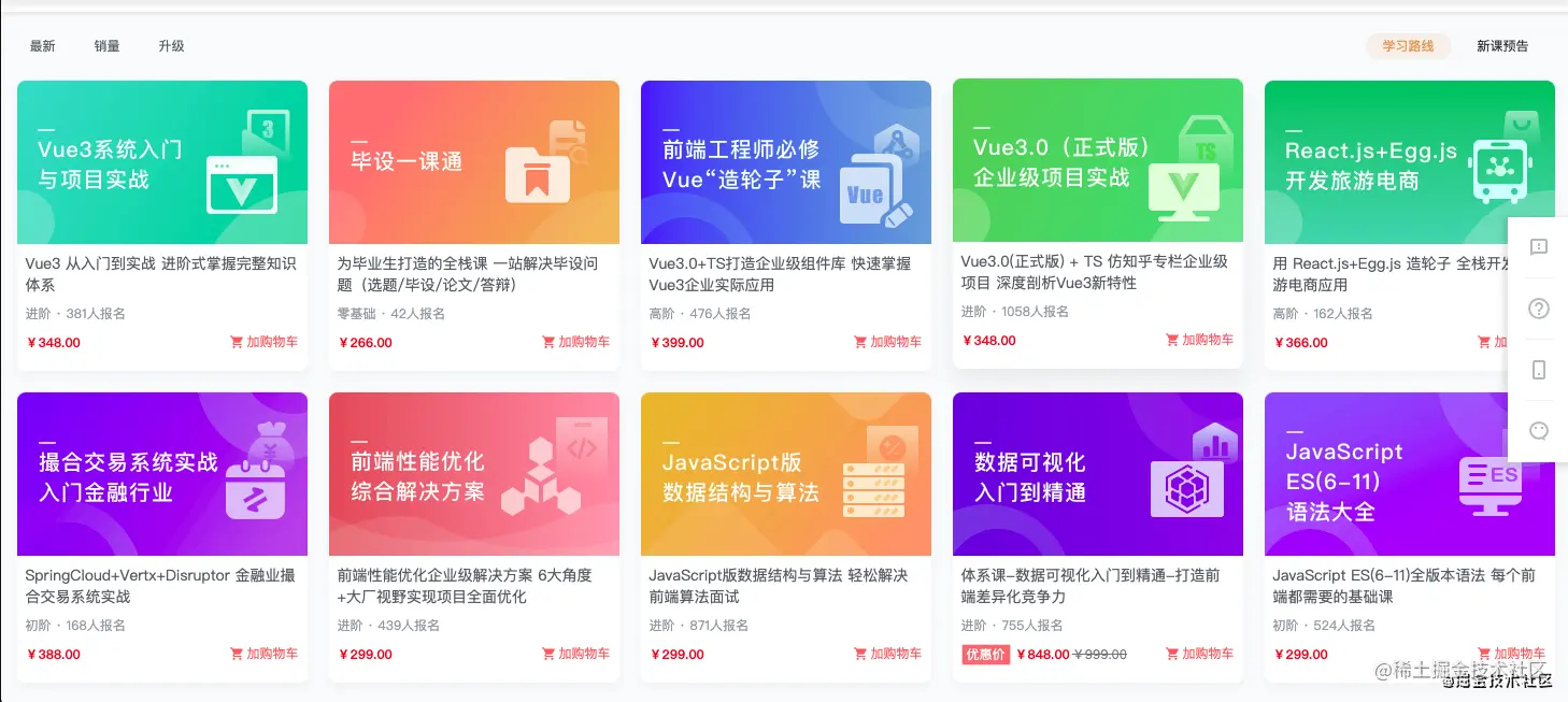 下图是我们本次要爬取的内容,要求获取到每门课程的信息并最终写入到一个json文件中; 目标网址。