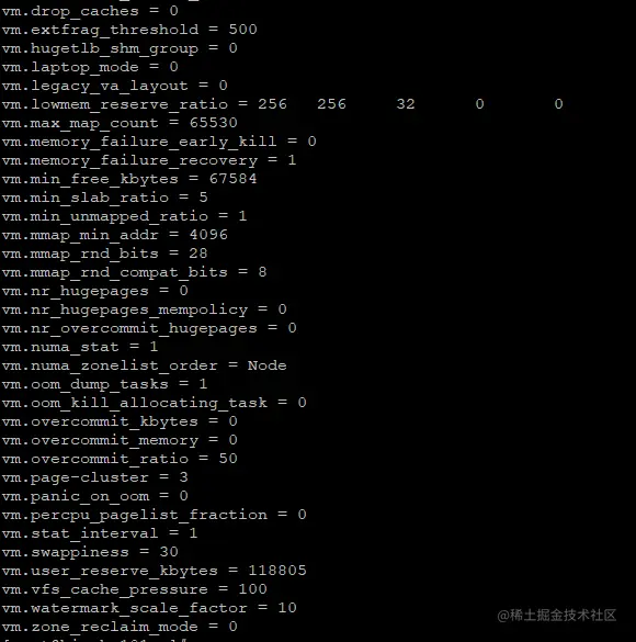在CentOS 操作系统中,我们可以通过如下命令来查看所有的系统参数。