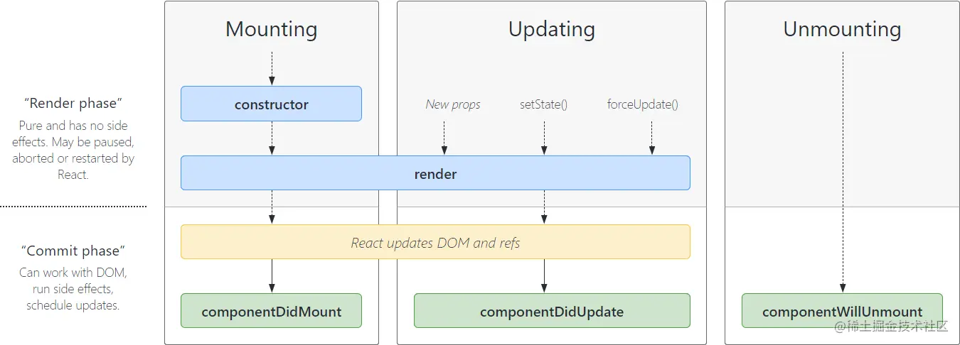 - 组件修改属性的时候,组件实例保持不变,props 被修改,重新 render()。