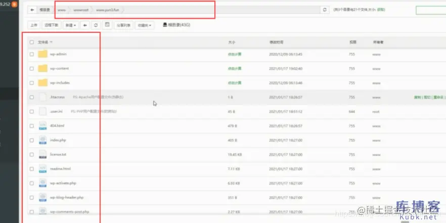 以宝塔面板界面截图来说明,没有安装宝塔面板的朋友可以用文件数据传输工具,比如winscp。