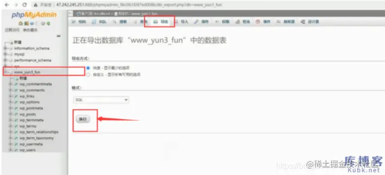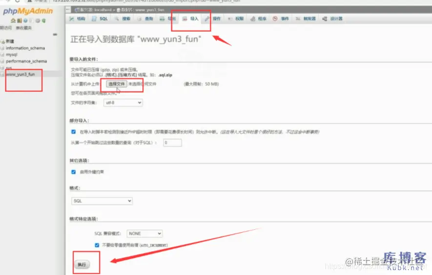接着,在新的云服务器里打开phpmyadmin面板,把对应的数据库导入进来。