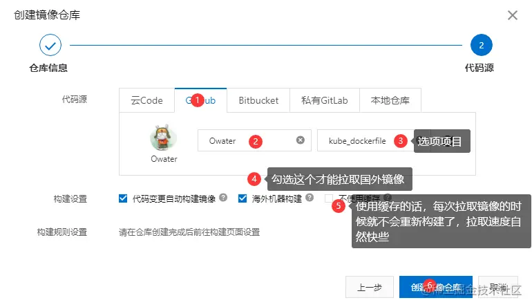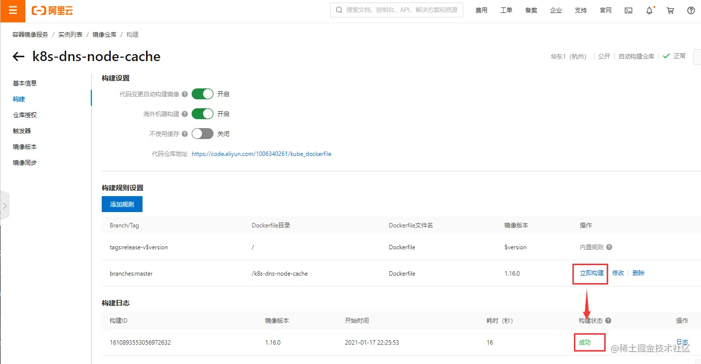 于是只能采取曲中的办法,借用 阿里云构建镜像