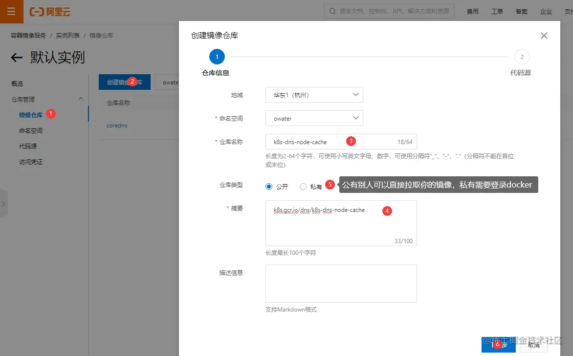 创建阿里云镜像库