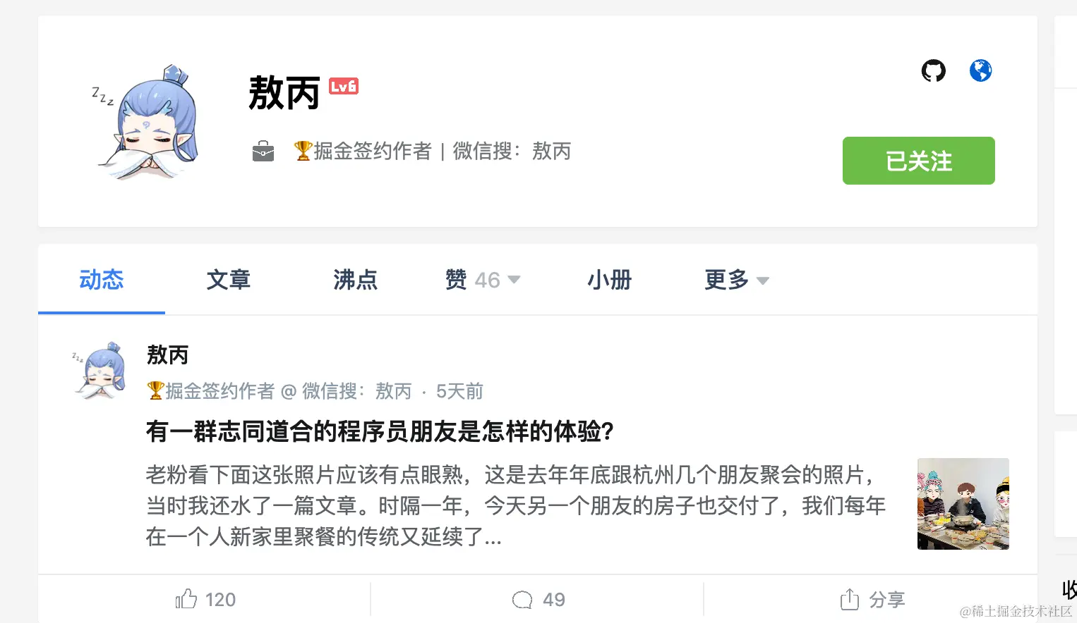 有一个成语,叫未雨绸缪;还有一句话,叫不打没把握的仗。换言之,就是一个道理,吃了这顿,一定要惦记下一顿,哈哈……年初的疫情,当时工作跟生活的节奏完全是乱套了,做饭时候想着写代码,上厕所时拿着手机开会。在这个期间,自己的开发工作搞完了,就想了想要干嘛,然后就把自己的技术点什么的,写了写Markdown文档总结了总结,相当于复盘自己吧。在这个总结的过程中,在网上发现了一个后来比较火的博主:敖丙,如果我是跳槽的“从犯”,他就是幕后主犯了。