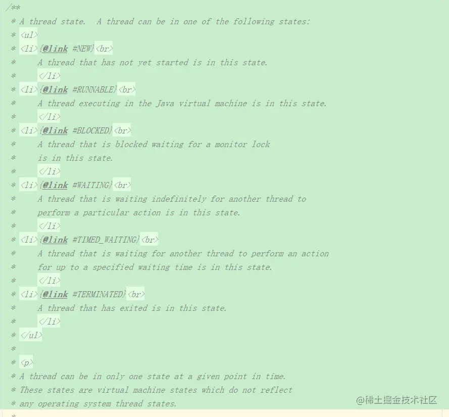 那么是不是以为着线程有六种状态呢?我们再仔细看一下注释说到是什么。