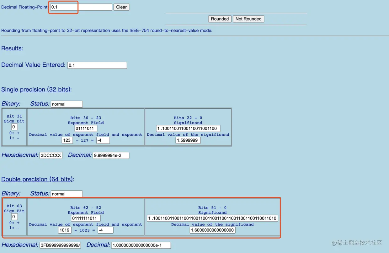 可借助 这个可视化工具 查看浮点数在内存中的二进制表示)