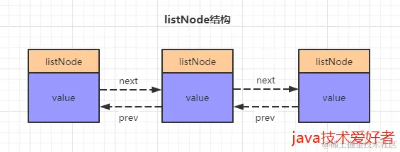 我们可以看到,listNode就是链表中的节点元素,通过prev和next组成双向链表。