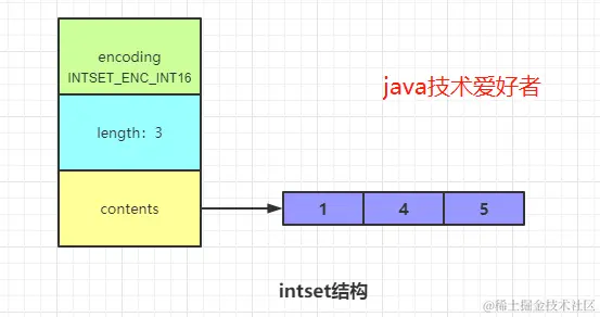 encoding有三种,分别是INTSET_ENC_INT16、INSET_ENC_INT32、INSET_ENC_INT64,代表着整数值的取值范围。Redis会根据添加进来的元素的大小,选择不同的类型进行存储,可以尽可能地节省内存空间。