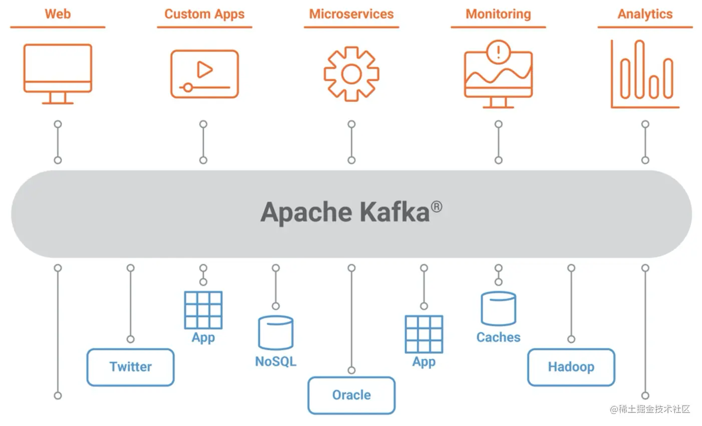 但是,由于Kafka是个优秀的小伙,它内卷的非常可以,就能做更多的事情。它的本分范围更加大,包括但不限于: