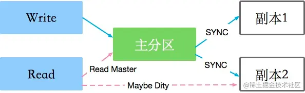 副本能够增加读操作的并行读,但会读到脏数据。如果你想要读到的数据是一致的,可以采用同步写副本的方式,比如KAFKA的ack=-1,只有全部同步成功了,才认为本次提交成功。