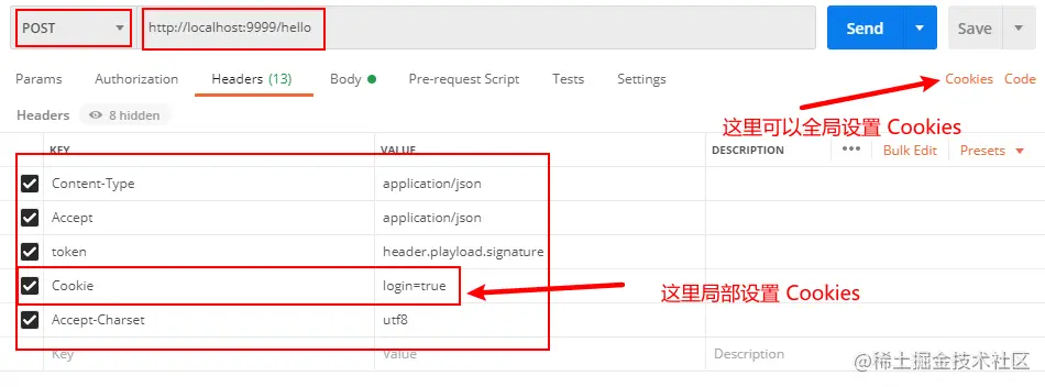 method:请求方法headers:请求头cookies:请求 Cookiesjson:请求体的一种类型(还有froms表单等类型)response返回值的headers、json、cookies也类似latency模拟服务器卡顿(因为模拟的后端 API 返回数据几乎是瞬间的,这里我们让其卡顿 2 秒)