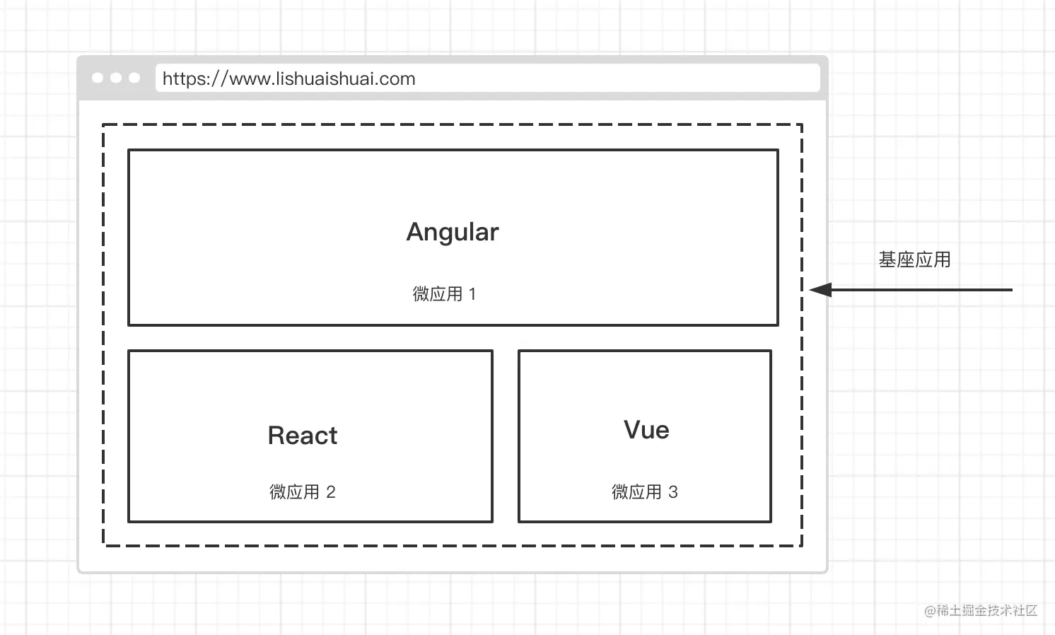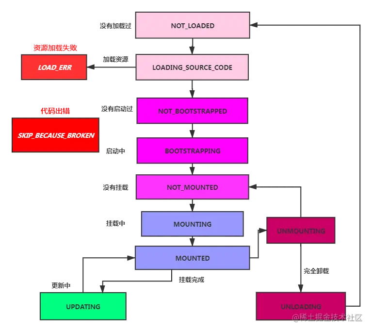 这里要注意跟 iframe 实现页面嵌入机制的区别。微前端没有用到 iframe,它很纯粹地利用 JavaScript、MVVM 等技术来实现页面加载。后面我们将介绍相关的技术实现。