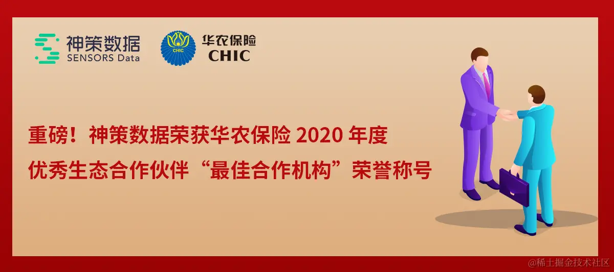 近日,神策数据在华农保险 2020 年度优秀生态合作伙伴评选中,通过优秀表现和高质量的系统交付能力,荣获“最佳合作机构”的荣誉称号。未来我们将协同华农,共同为华农数字化转型及行业高质量发展一起做出更大贡献。