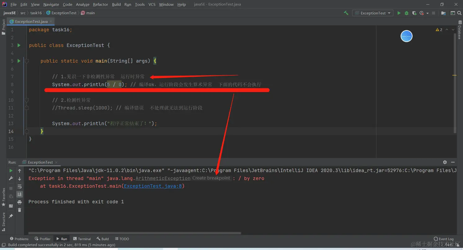 1.非检测性异常,运行时异常的情况:
