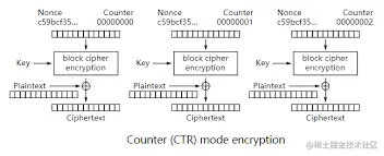 使用一个计数器Counter与密钥key先异或,再与明文加密生成密文