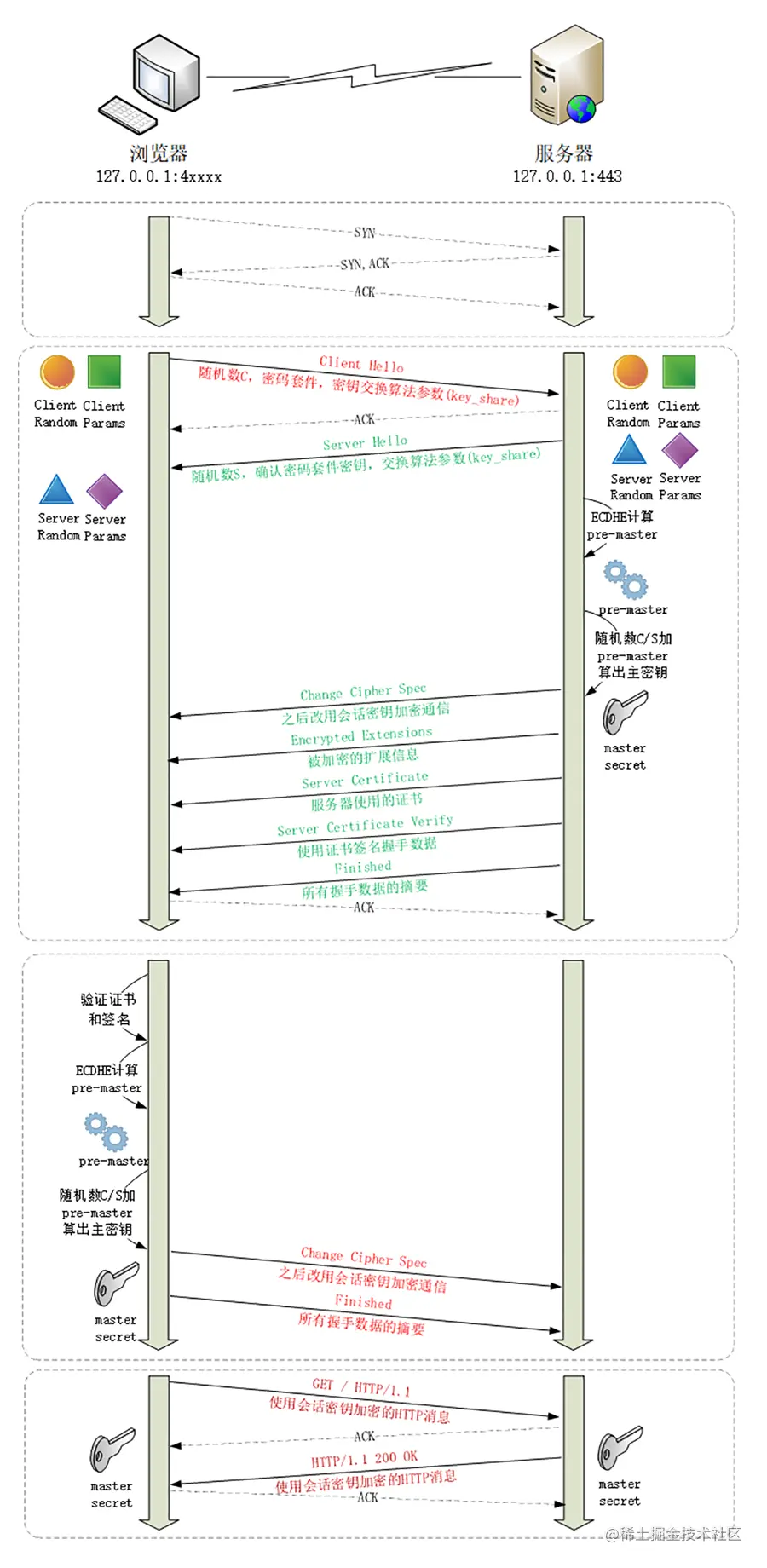 4,用Server Params和Client Params通过ECDHE生成pre-master随机数。