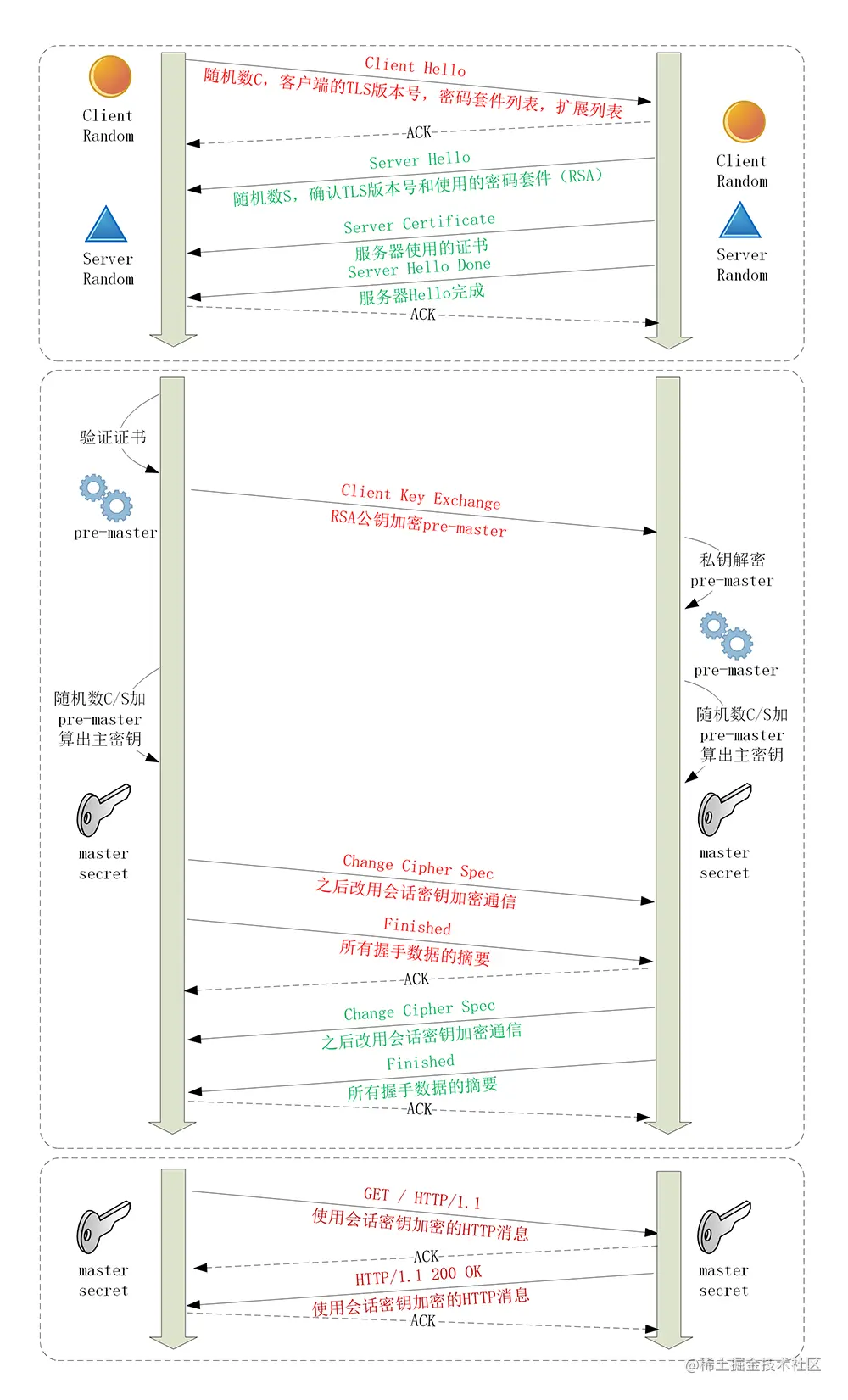 5,客户端与服务端利用pre-master、Client Random和Server Random生成对称加密所用的master sercret