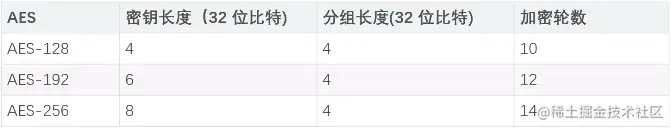 三种不同密钥长度,加密轮数