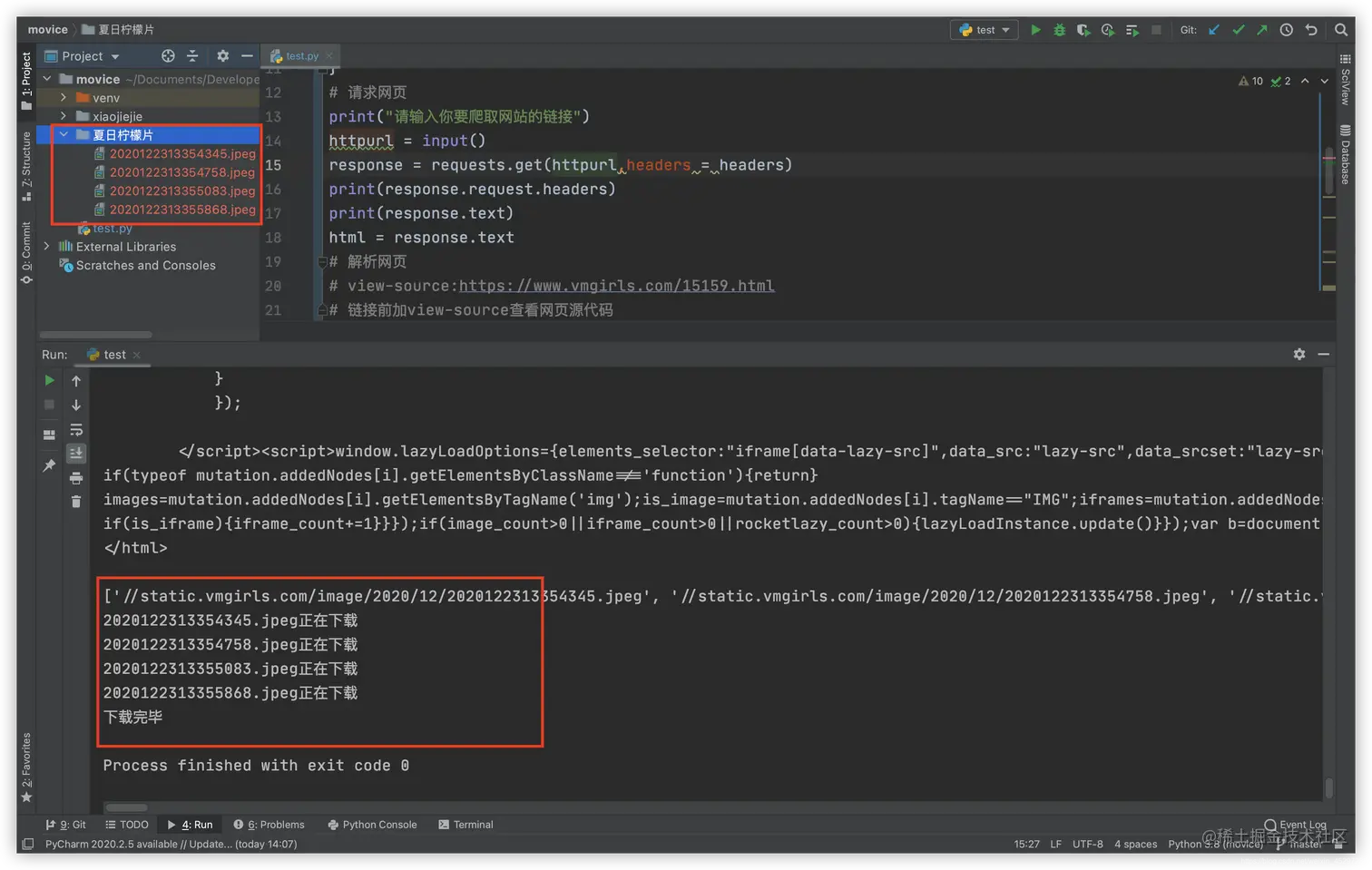 # requests 请求 需要提前在Terminal中安装 pip install requests