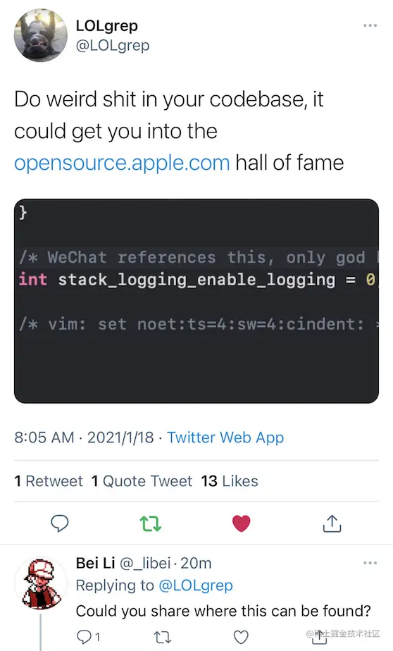 因为以前有看过一个库的源码,所以一看到 stack_logging_enable_logging ,我就知道大概啥原因了。其实从变量名也就很直观能看出来了,详细的可以继续往下。