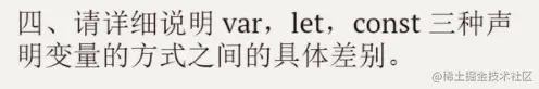 var 缺点 1.有变量提升,未声明前可以使用,2.重复命名会覆盖,3.污染全局作用域,4.块级作用域,外面也能访问。
