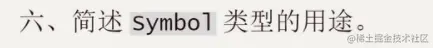 - 阻止对象上属性名的冲突,每个 Symbol 都独一无二的,可以保证不与其他属性名产生冲突,