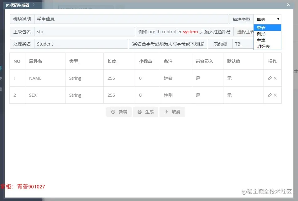 8. 代码生成:生成完整的模块代码,并保留生成记录模版,可复用 (超强悍开发利器)