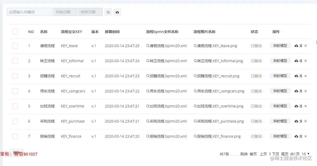 2.流程管理 :导入导出流程资源文件、查看流程图、根据流程实例反射出流程模型、激活挂起