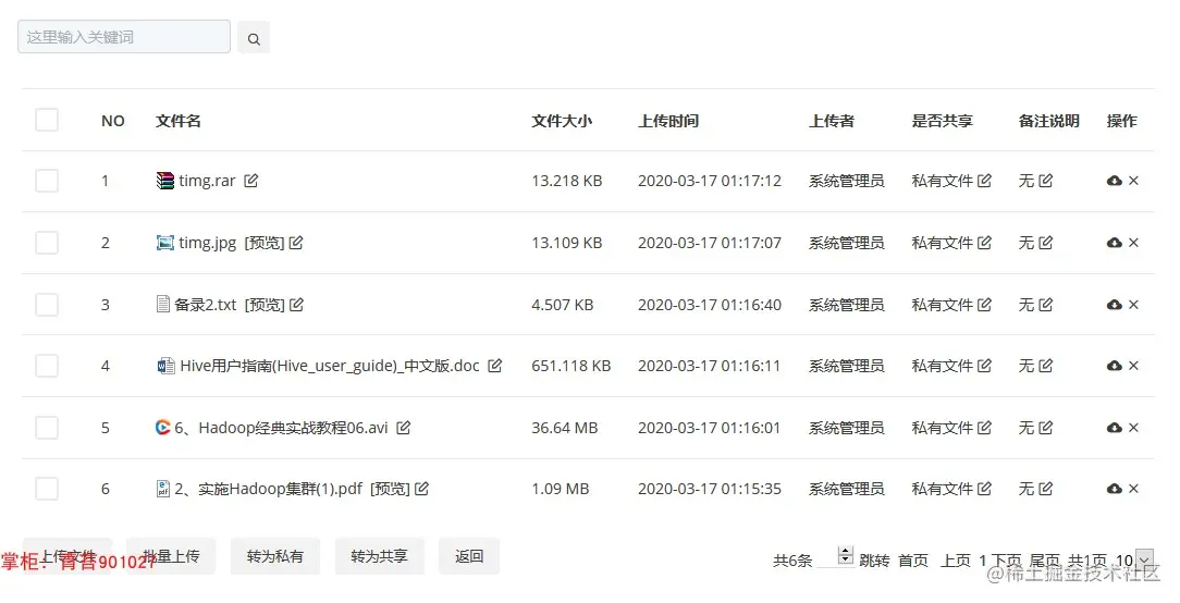 44. 我的文件:单个、批量上传文件,转为公有私有,预览图片、文本、PDF文件,播放MP4视频