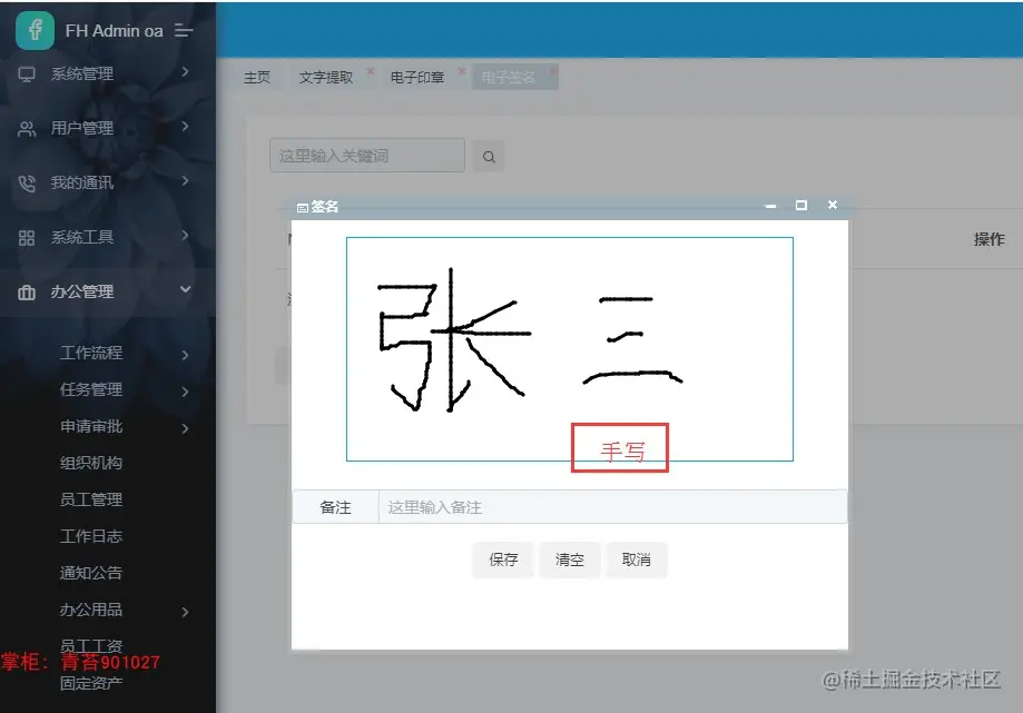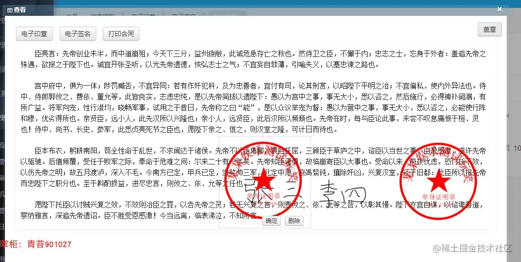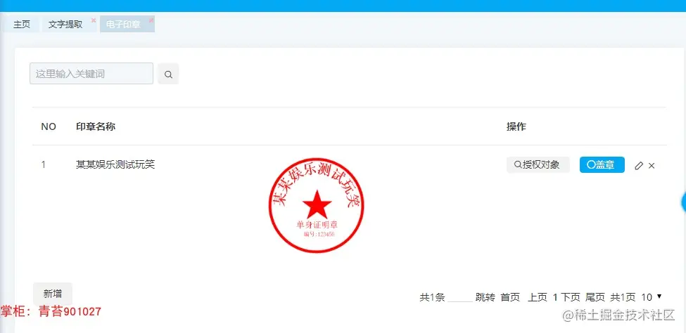 . 电子印章:根据编辑的文字信息生成透明的png印章图片,可以授权给不同的角色查看