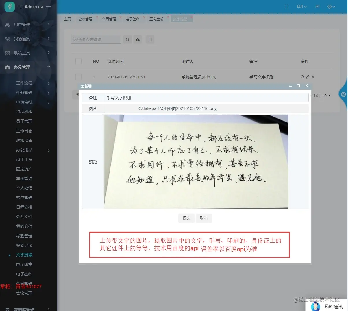 . 文字提取:上传带有文字的图片,读取图片中的文字,手写文字,证件上的文字,用到百度api技术